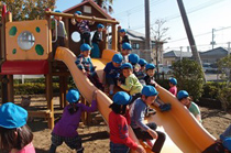 大規模保育園のため友達がたくさんできます。 多くの友だちと社会性や協調性を自然に身につけることができます。 ※写真をクリックしていくと内容が切り替わります。