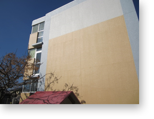 こんなにきれいになりました!日の光を受けて、壁面が照り輝いています。 |
